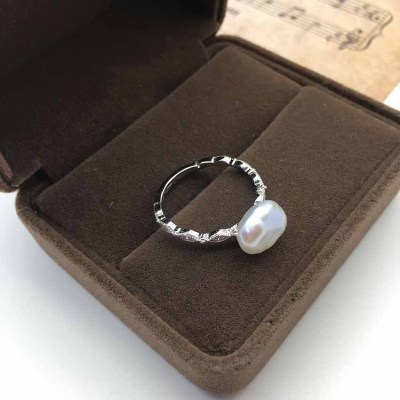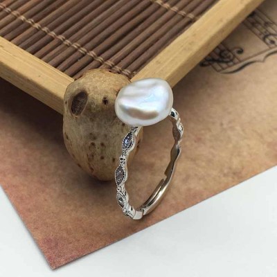 Keshi Perle verstellbarer Perlenring+Perlenohrringe