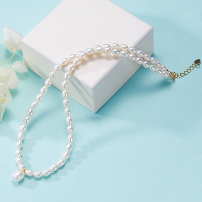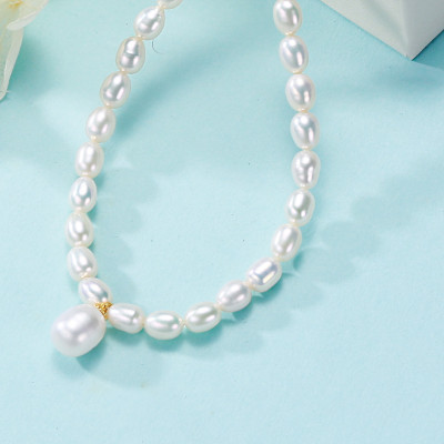 Reisperlenkette mit Tropfenperlenanhänger